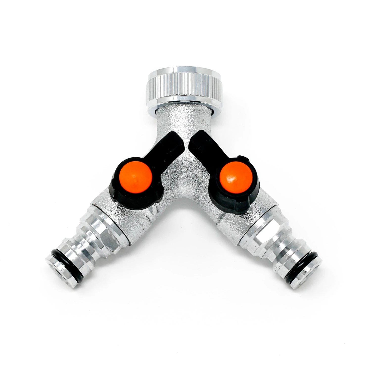 The Claber metal dual tap connector is used to attach two hose pipes with Quick-Click automatic couplings to just one water outlet. Taps adjust independently allowing just one outlet or both to be used at a time. Secure fit on taps with 3/4″ thread.
