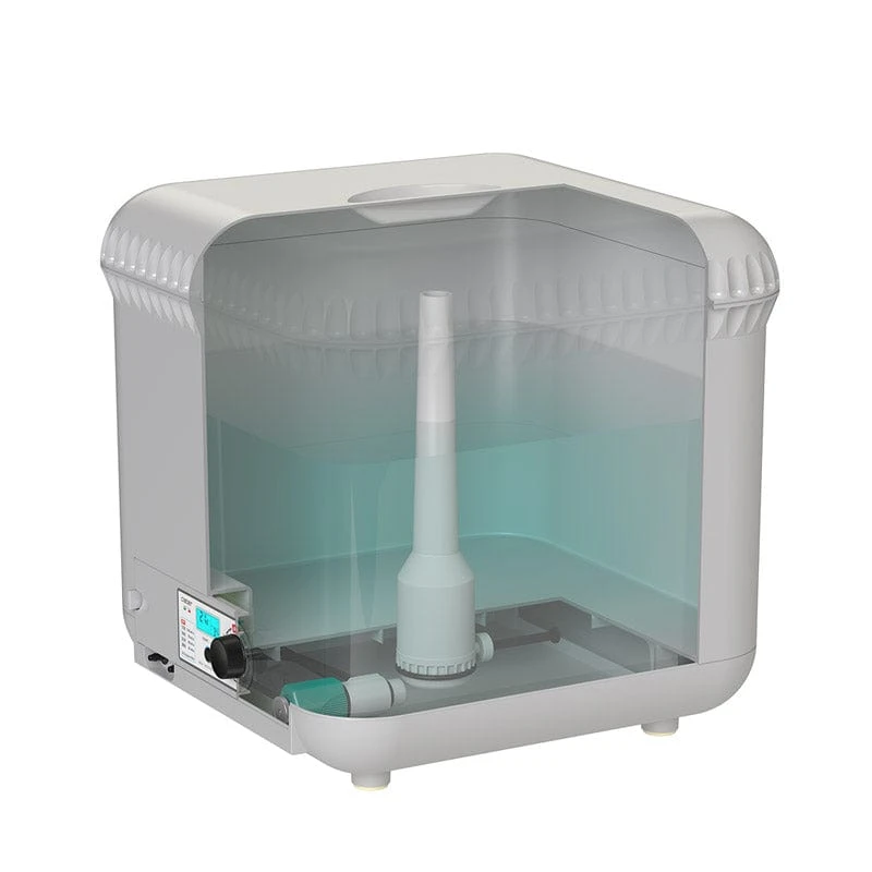The backlit LCD display shows the selected programme, the duration of the irrigation cycle in progress, any programmed delay, and the time remaining until the next irrigation cycle. The Oasis irrigates once every 12 hours after the initial cycle.
