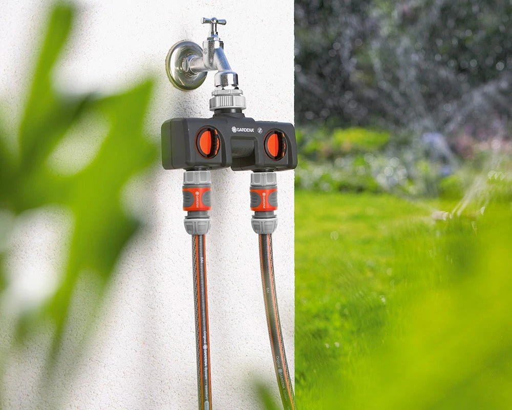 The Gardena Twin Tap Connector is a brilliant and practical addition to any garden tap allowing for two connections to a single tap, quickly and easily. It can be connected directly to most garden taps and has various adaptors to suit different tap sizes.