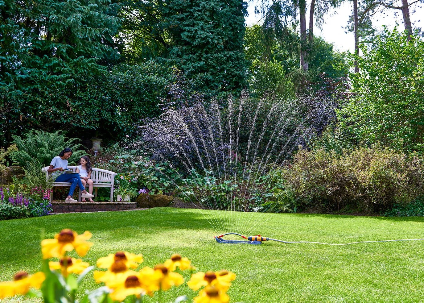 - An oscillating rectangular sprinkler is suitable for lawns, beds and borders.