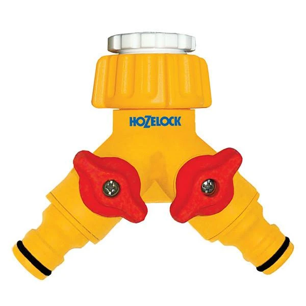 The Hozelock Dual Tap Connector allows for two garden hosepipes to be fitted to a single garden tap or to be used to split a garden hose in two. Using the valves on each outlet, either select the off position for both valves, a quarter turn to turn on either one of the two outlets, or both simultaneously. Easy to install, just screw it straight on to a standard garden tap. Fits onto garden taps with a 3/4″ or 1/2″ BSP male thread outlet. Rubber seals prevent leaks.